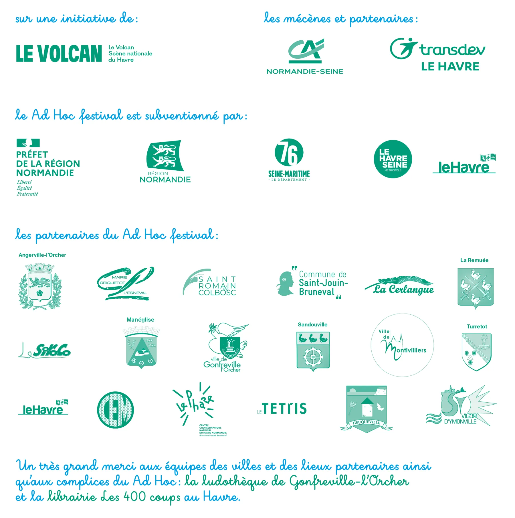 Grâce à son programme Ad Hoc +, soutenu par le Ministère de la Culture dans le cadre du plan Mieux produire, Mieux Diffuser, les spectacles du festival rayonnent également dans d’autres lieux partenaires de toute la région Normandie.